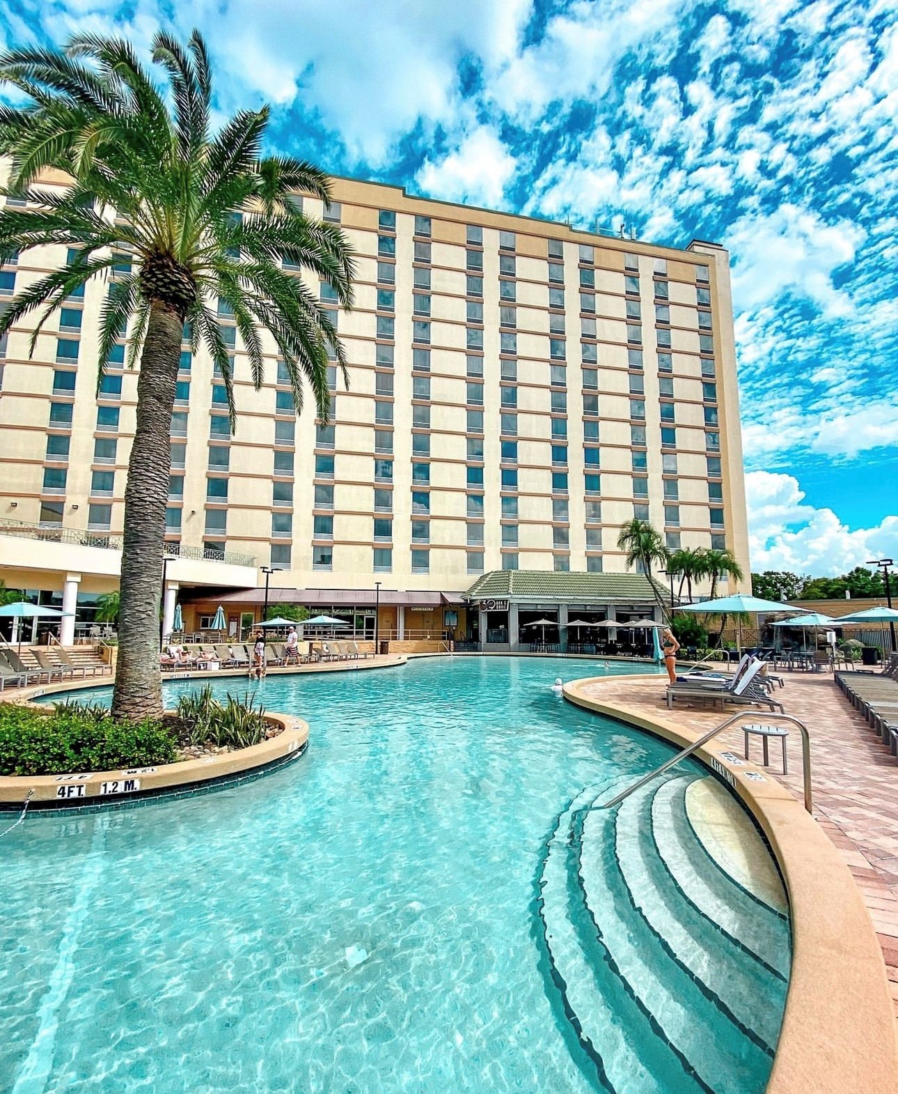 Rosen Plaza is home to a sizeable sparkling pool with plenty of room to swim laps under the springtime sun.