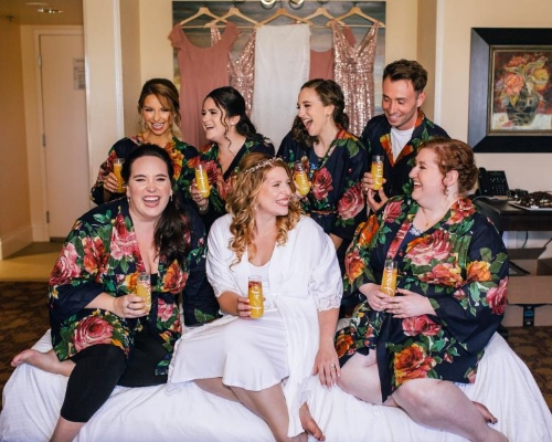 Equipped with a king-size murphy bed, a large table and chairs, and a small kitchenette with a sink and a mini fridge, it’s the perfect place for getting ready for your big day.